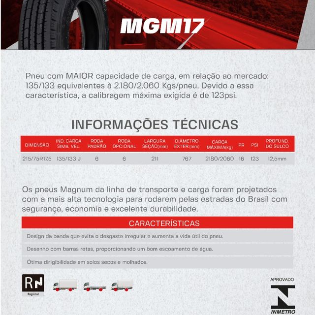 PNEU MAGNUM 215/75R17.5 MGM17(LISO) PR16 135/133J D