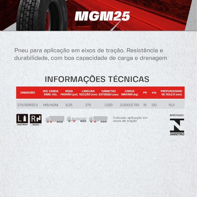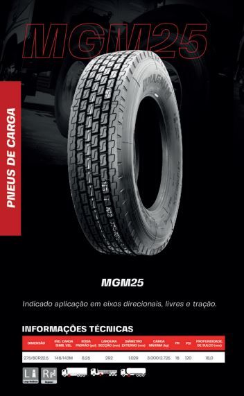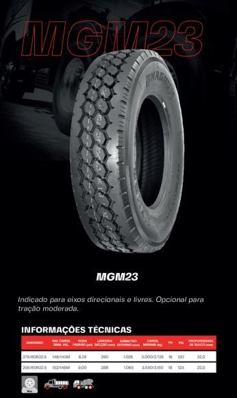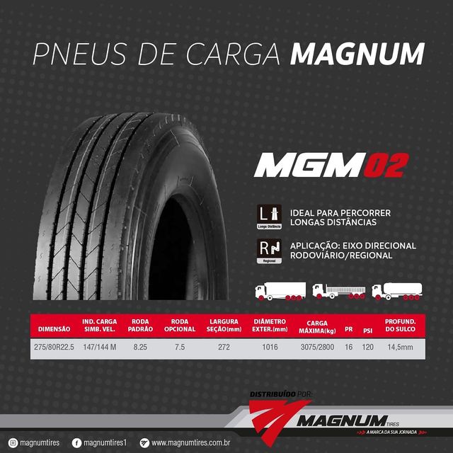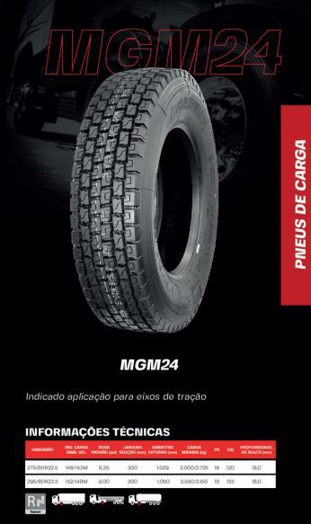 PNEU MAGNUM 275/80R22.5 MGM24(TRAÇÃO) PR16 146/143M TL