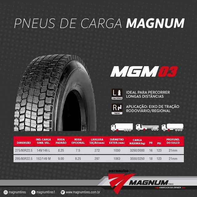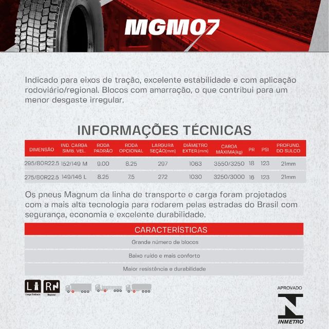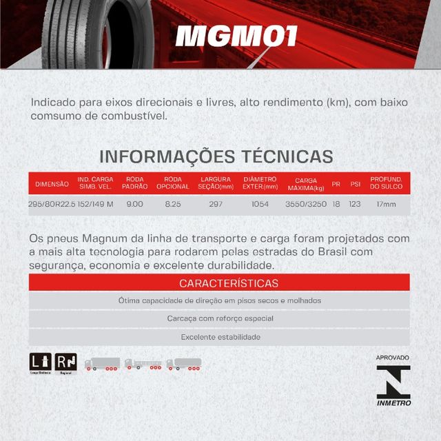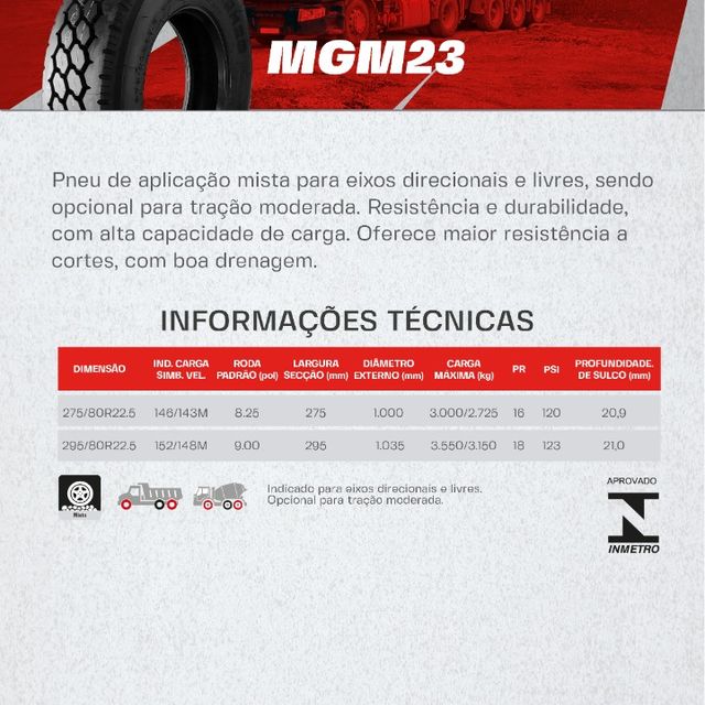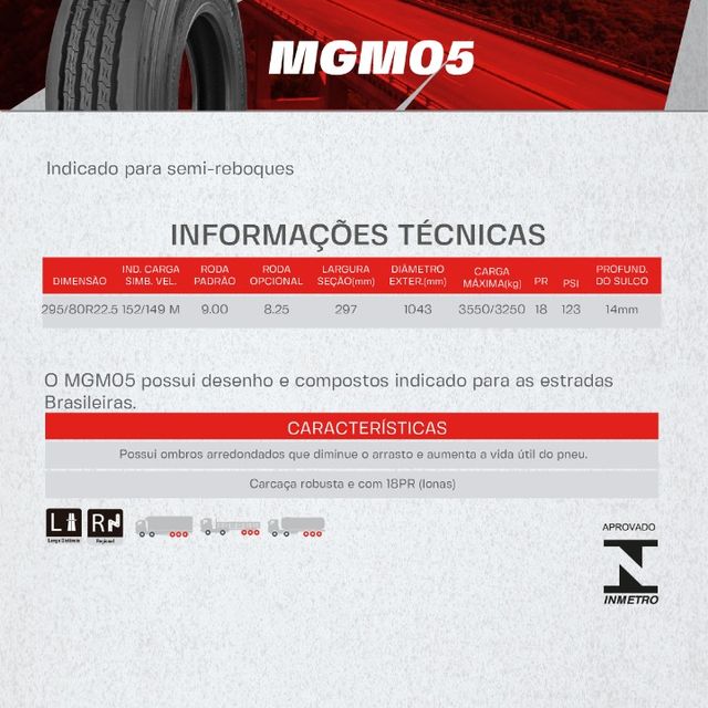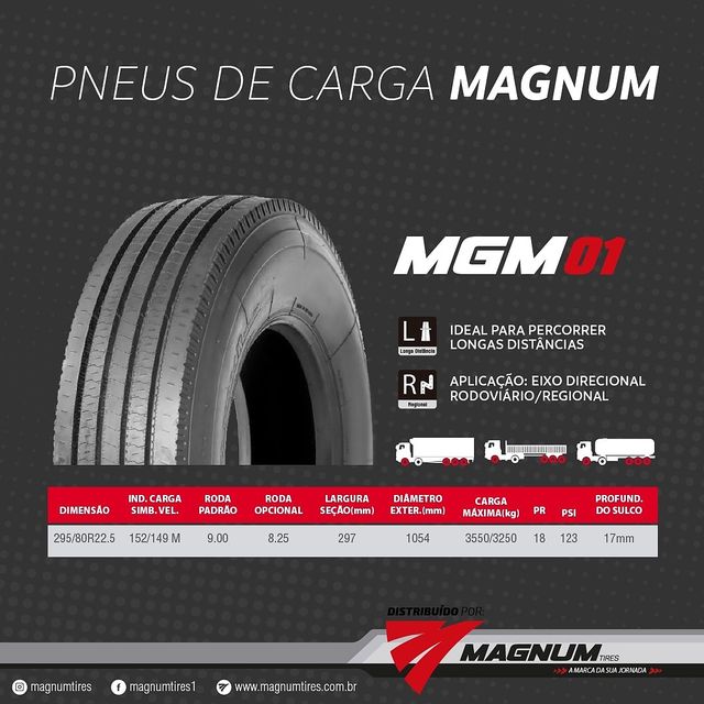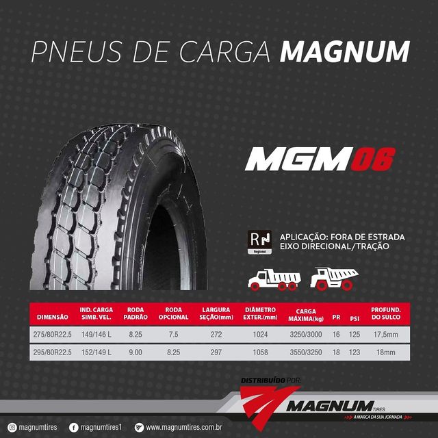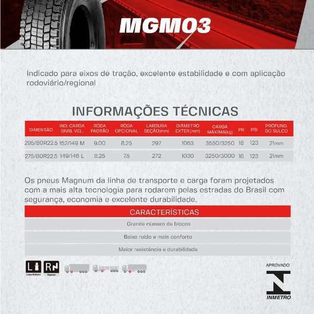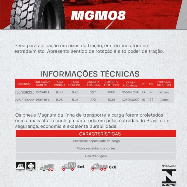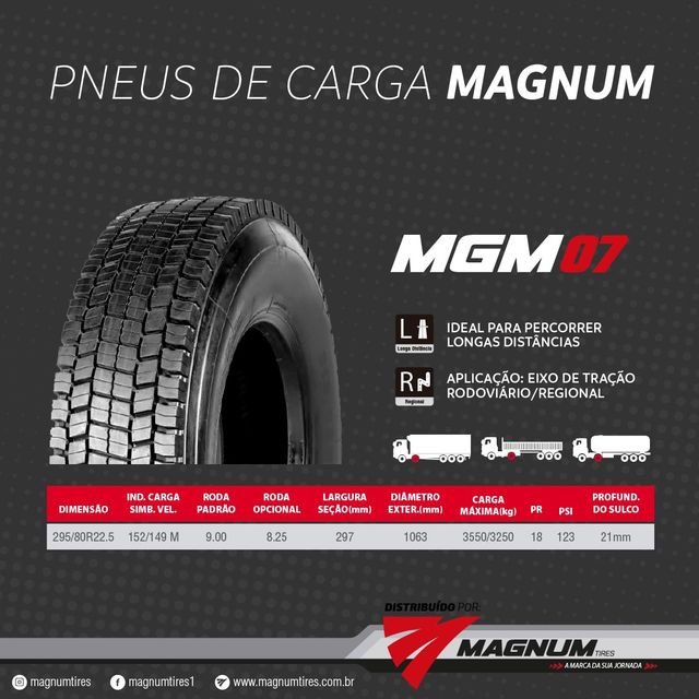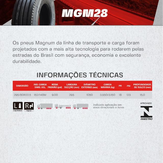 PNEU MAGNUM 295/80R22.5 MGM24(TRAÇÃO) PR18 152/148M T
