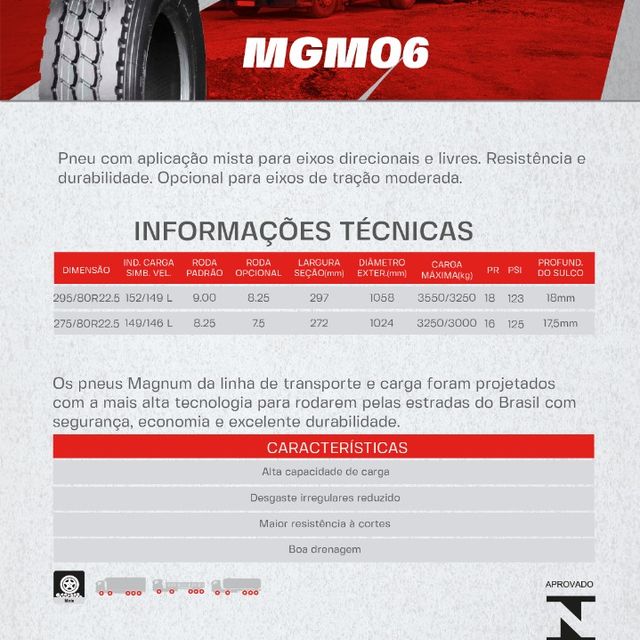 PNEU MAGNUM 295/80R22.5 MGM06(MIXTO) PR18 152/149L MB TL