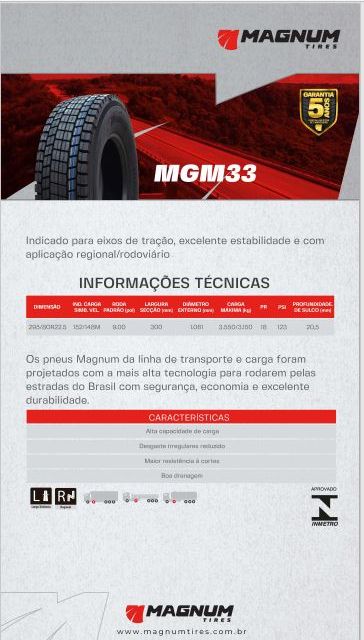 PNEU MAGNUM 295/80R22.5 MGM33(TRAÇÃO) PR18 152/148M B