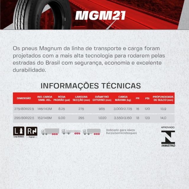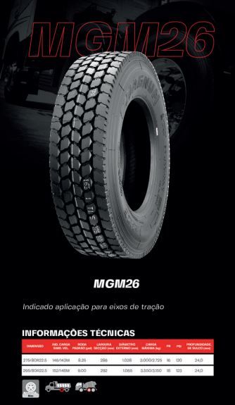 PNEU MAGNUM 295/80R22.5 MGM26(MISTO TRAÇÃO) PR18 152/149M D TL