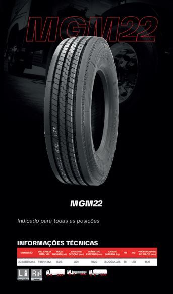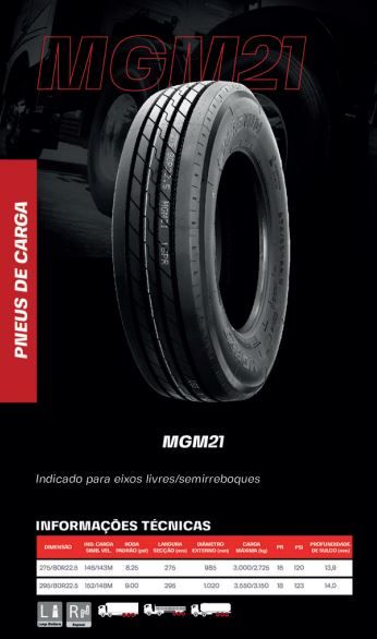 PNEU DE CAMINHÃO MAGNUM 275/80R22.5 MODELO MGM02(LISO) PR16 147/144M