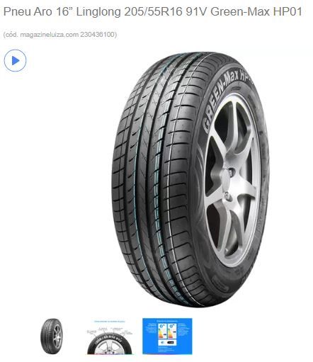Pneu Aro 16” Linglong 205/55R16 91V Green-Max HP01