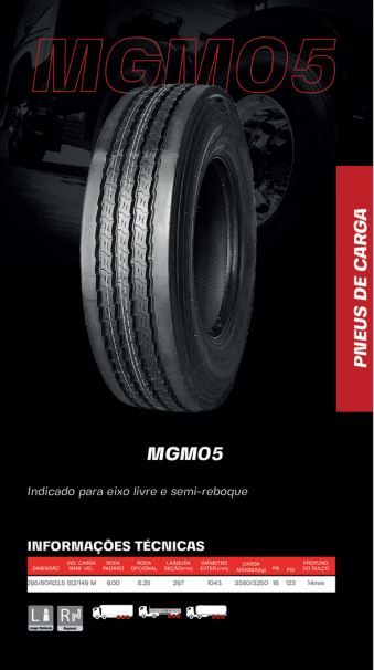 PNEU DE CAMINHÃO MAGNUM 295/80R22.5 MODELO MGM01(LISO) PR18 152/149M